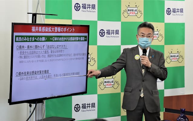 杉本達治知事は22日の記者会見で「3回目接種は、行動制限につながるリスクを避けていることになる。協力へのメリットが少し出るようにした」と述べた。