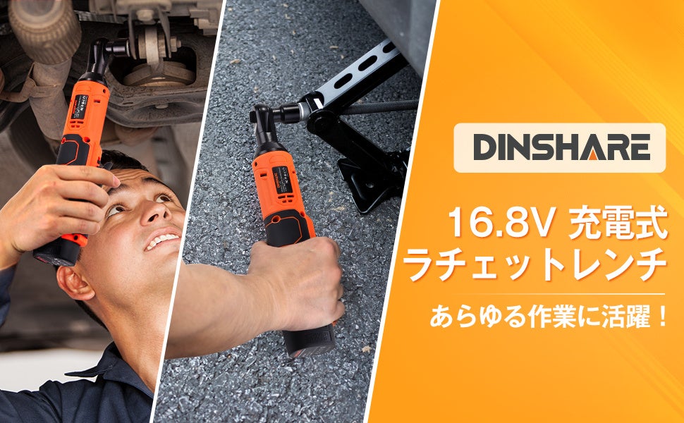 DINSHAREコードレスラチェットレンチは400 RPM高速な回転速度を備える上、ツールの究極の制御を提供します!自動車メンテナンスまたは家の修理作業など様々なシーンに大活躍しています!このような優れた速度機能により、仕事で様々のニーズに応じてほとんどの場面に柔軟に適応できます。されに、柔軟な設計により、3/8′′アンビルは豊富なサイズのソケットに適用して、ほとんどのナットとボルトを簡単に締め付け/取り外しできます。¥